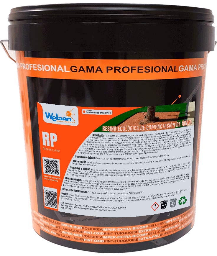 Producto monocomponente de acabado mate, compuesto básicamente de una resina sintética en dispersión acuosa, agentes mateantes y aditivos seleccionados. De elevada resistencia al exterior y no amarillea. Importante en áridos blancos o de colores claros (amarilleo fácilmente perceptible). Prácticamente no altera el aspecto natural del árido al que aglomera. No aporta rigidez al pavimento en contraposición a otros productos del mercado, muy importante en alcorques, cuando a causa de los choques térmicos el pavimento existente se suele levantar y romper.